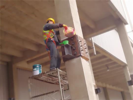 沃爾沃汽車成都工廠新建SWE及培訓(xùn)室項(xiàng)目局部柱粘鋼、植筋加固改造項(xiàng)目,施工內(nèi)容為一層局部框柱化學(xué)植錨栓及鋼圍套加 固,其軸線范圍為:(1)、G~H段/25軸(砼框架柱);(2)、G~H段/26軸~27軸(砼框架柱);(3)、G~H段/27軸~28 軸(砼框架柱);(4)、以上在該區(qū)域范圍內(nèi)共有7根框架柱四周截面進(jìn)行鉆孔植筋及粘鋼 附以下現(xiàn)場(chǎng)施工記錄照片